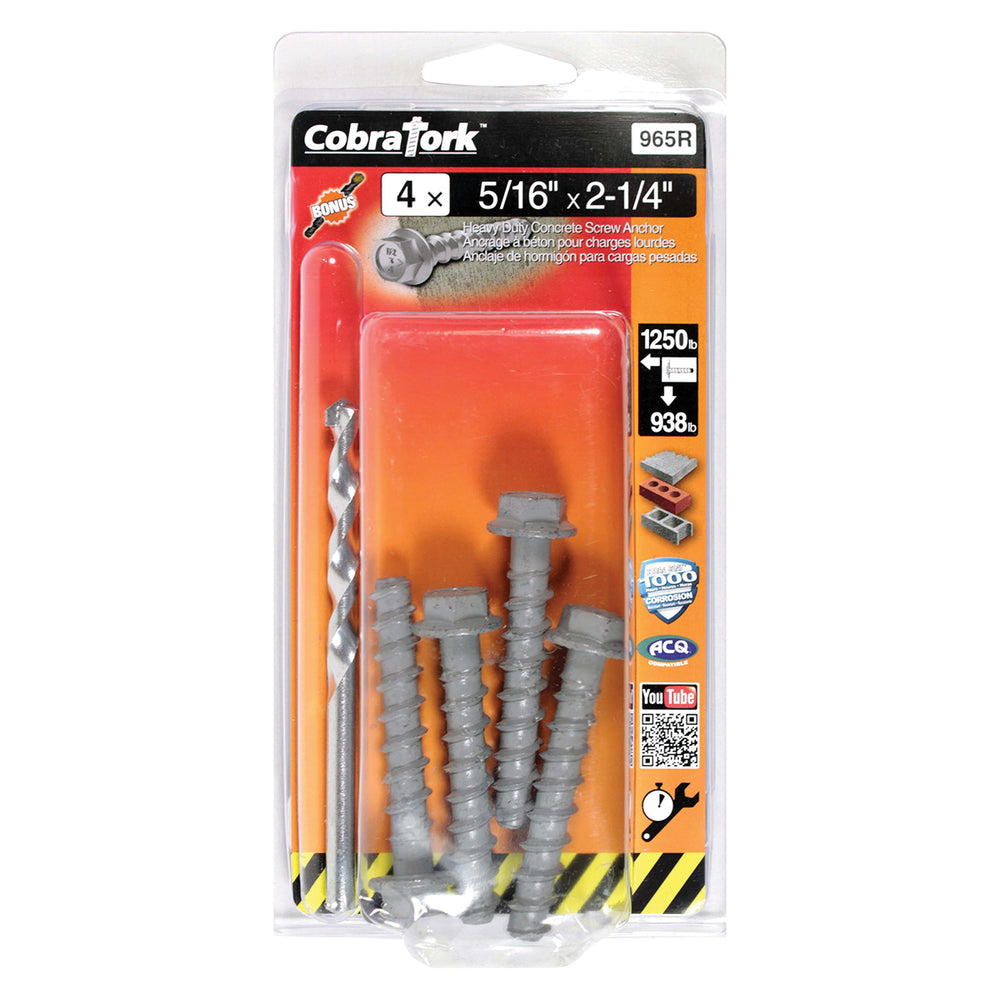 COBRA TORK HEXAGONAL HEAD ANCHOR 5/16 X 2 1/4 + DRILL BIT (4+1)
